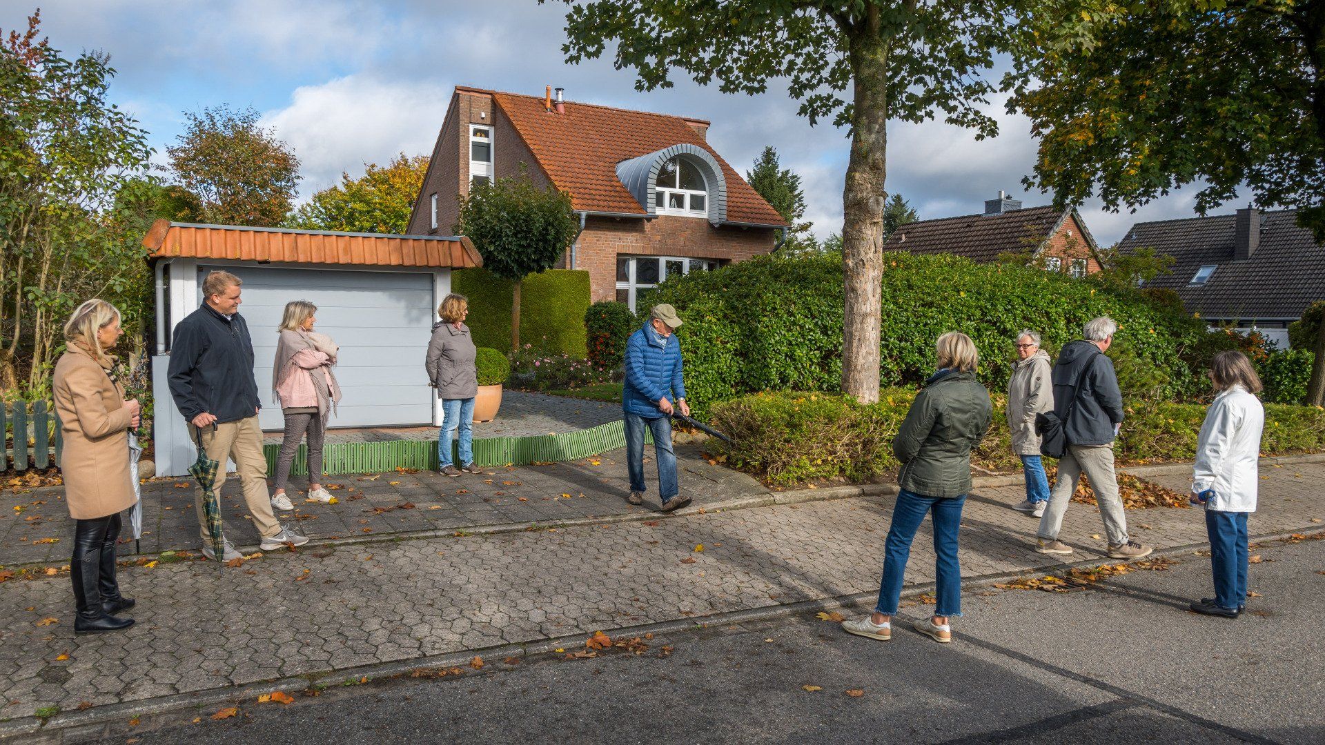 Zentrale Themen auf dem Rundgang der entlang des Mielkendorfer Wegs, durch die Grünflächen mit ihrem hohen Naherholgungswert bis zum Verbrauchermarkt am Ausgang von Rammsee führte, waren Bauen und Wohnen, Straßenführungen, sichere Rad- und Fußwege, die Modernisierung von Spielplätzen, die kinderfreundliche und überhaupt generationengerechte Gestaltung der Außenflächen. Kritisch betrachtet wurden die brachliegenden, potenziellen Flächen für Blühwiesen und die Förderung von Lebensräumen für Kleinstlebenwesen.