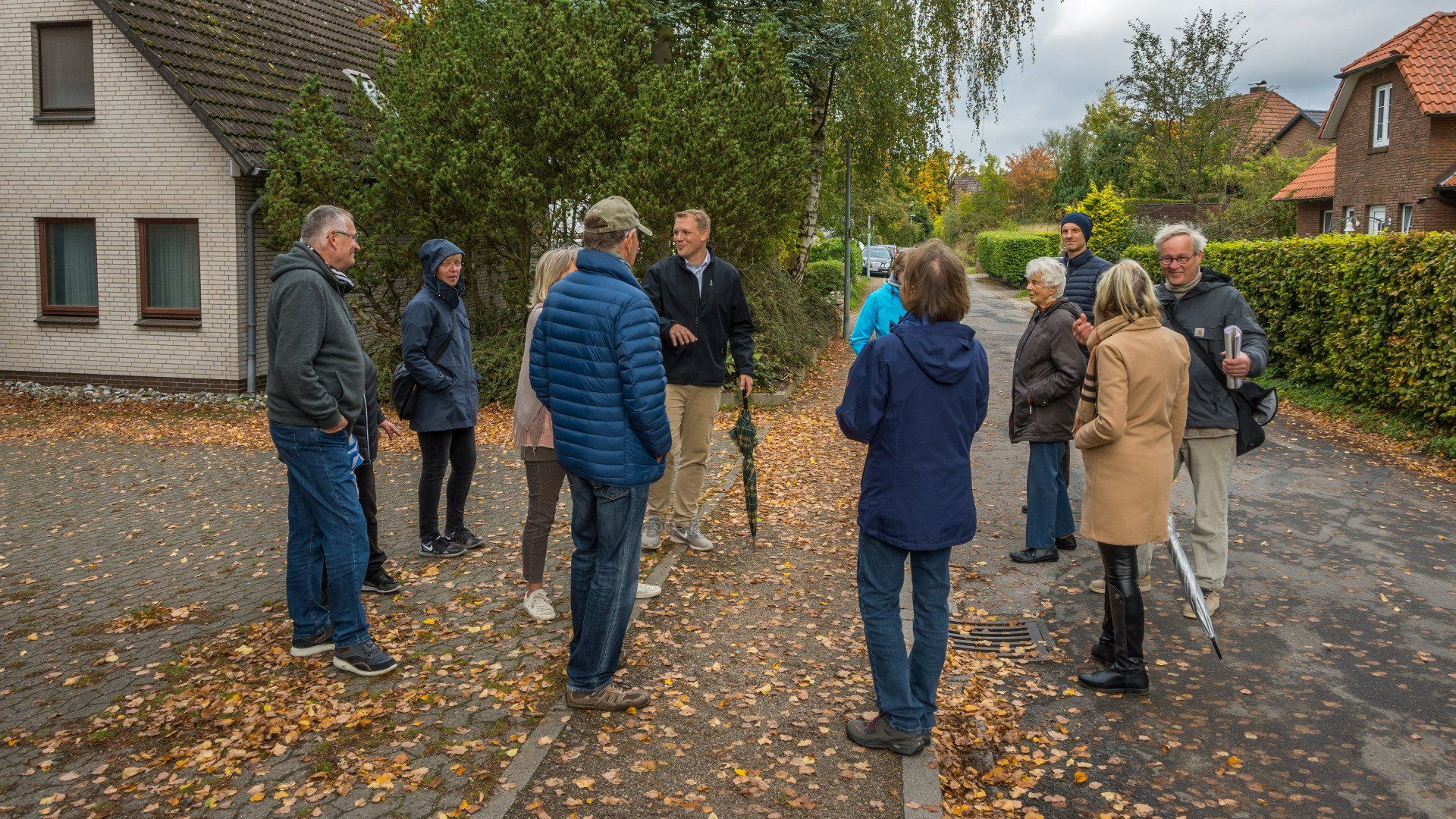 14 Molfseer Bürger*innen, von der Erstwählerin bis zur rüstigen Seniorin und 7 Vertretungen von Bündnis 90/Die Grünen, SPD und FDP haben sich mit Timo Boss zum ersten politischen Ortsteilspaziergang getroffen. Ausgangspunkt war das Torhaus des Freilichtmuseums und damit gab es schon viel Gesprächsstoff rund um die Frage, wie diese bedeutsame Kultureinrichtung stärker in den Ortsteil einbezogen werden kann.